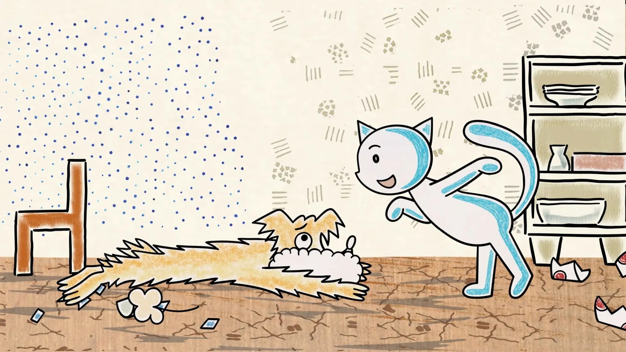 „To bylo tenkrát, když pejsek a kočička spolu ještě hospodařili. Měli u lesa svůj malý domeček a tam spolu bydleli a chtěli všechno dělat tak, jak to dělají velcí lidé…“ Josef Čapek v roce 1928 napsal a ilustroval „Povídání o pejskovi a kočičce“. Kniha byla vydána o rok později a od té doby je milují generace dětí i dospělých. Populárního animovaného zpracování se dílo dočkalo začátkem 50. let Eduardem Hofmanem. Režisérka a výtvarnice Barbora Dlouhá, inspirovaná Josefem Čapkem, přibližuje nyní svou invenční a hravou 2D animací příběhy pejska a kočičky současným dětem…